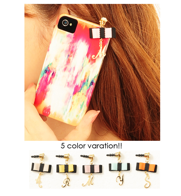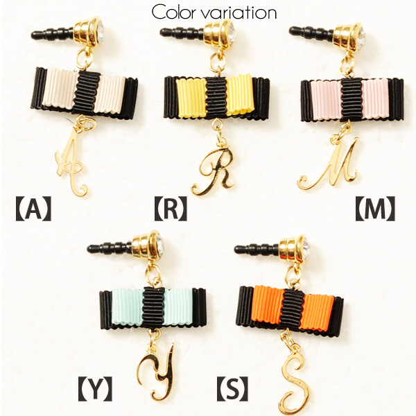 ★在庫処分★【スマートフォンアクセサリー】イニシャルリボン♪スマホピアス/チャーム/イヤホンジャック